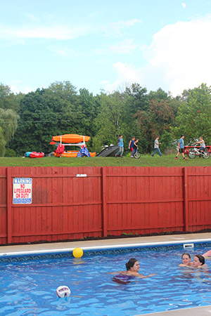 Pet friendly, fishing pond, biking, horse shoes, playground & walking trails.